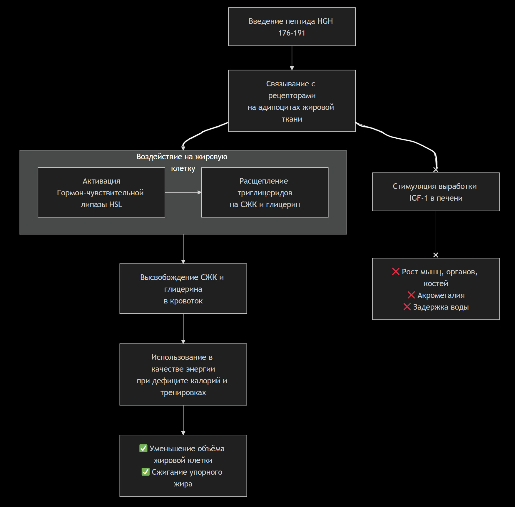 Давайте подробно разберем механизм работы пептида HGH 176-191.