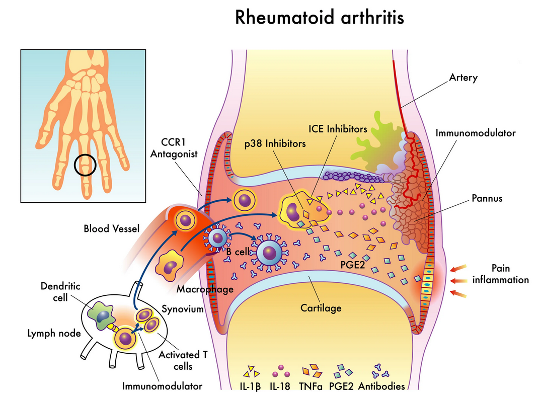 - Ревматоидный артрит (РА): у 70–80% пациентов с серопозитивным РА наблюдается положительный РФ. Связан с более тяжёлым течением, системными проявлениями и эрозивным поражением суставов.